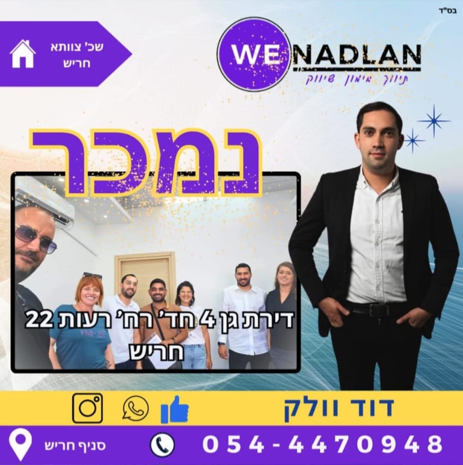 שלום, שמי דוד וולק יועץ נדלן בעיר חריש.